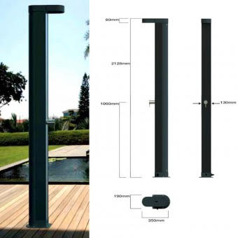 Aluminijski bojani solarni tuš koji zagrijava vodu u 30 litara aluminijskom spremniku, anti-kalk glava, jednoručna mješalica (za toplu i hladnu vodu). Proizvedeno u EU